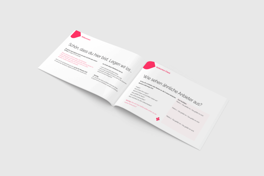 Starte mit dem DIY Logo Workbook und finde in 30–60 Minuten mehr Klarheit für Stil, Werte, Zielgruppe und Richtung deines Logos.